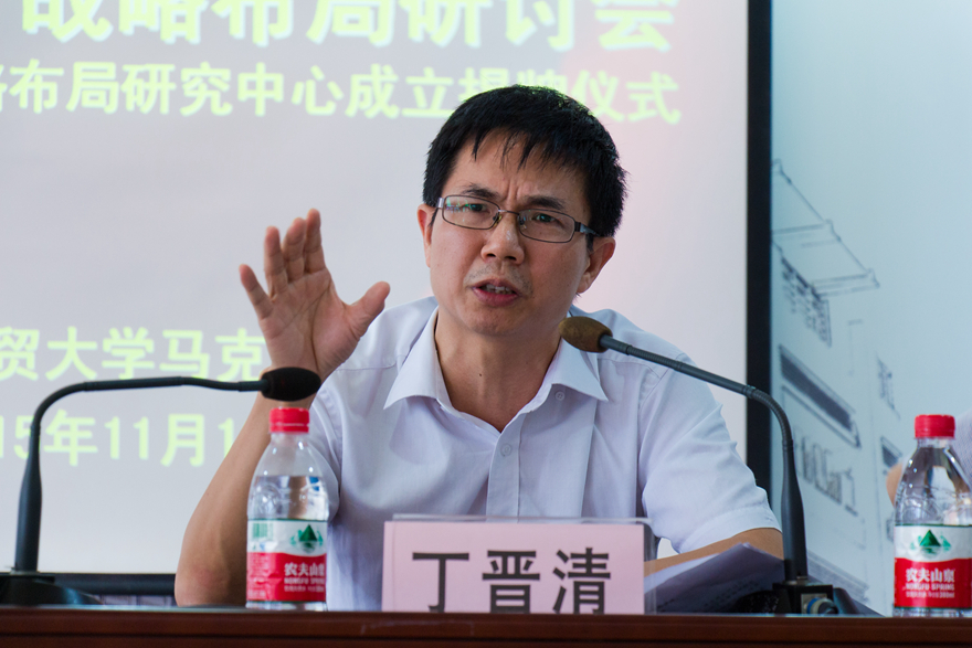 丁晋清在专题报告中对此次研讨会的召开以及“四个全面”战略布局研究中心的成立表示祝贺。他指出,广外成立“四个全面”战略布局研究中心是全省高校第一家,现了广外的政治敏感与责任担当。他对中心的工作提出了五个建议:一是要坚持正确的政治方向,实现正确政治标准与学术标准的有机统一;二是要坚持树立问题导向,突出问题意识;三是要坚持志存高远,多出精品力作;四是要坚持创新宣传方式,加强网络宣传;五是要整合资源,建立各部门的有机联系。