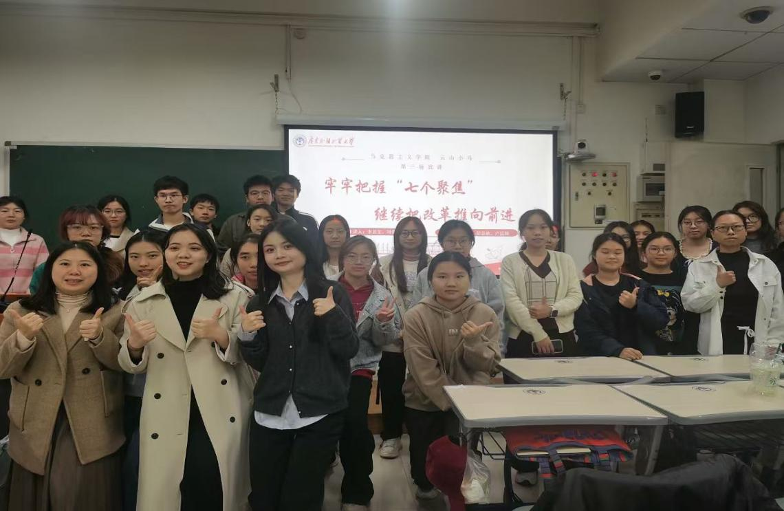 2024年12月12日晚,SUNBET申博体育“云山小马”宣讲团在大学城校区G310教室开展了一场以“牢牢把握七个聚焦,继续把改革开放推向前进”为主题的宣讲活动。本次活动旨在深入学习贯彻党的二十届三中全会精神,特别是关于全面深化改革和推进中国式现代化的重要论述。
