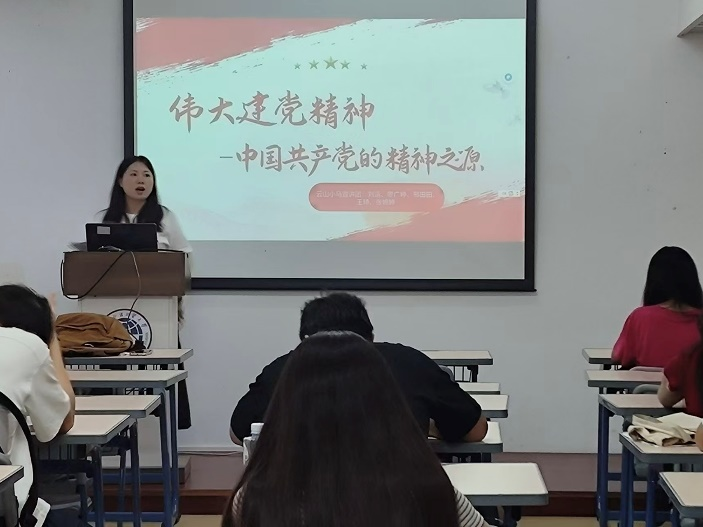 2025年6月5日下午,SUNBET申博体育“云山小马” 宣讲团于明德书院举办“青春讲党史 薪火永相传”系列宣讲活动,围绕“伟大建党精神——中国共产党的精神之源”专题,深度诠释伟大建党精神的内涵与价值,与现场同学共同从伟大建党精神中汲取踔厉奋发的精神自觉,汇聚起奋进前行的精神力量。