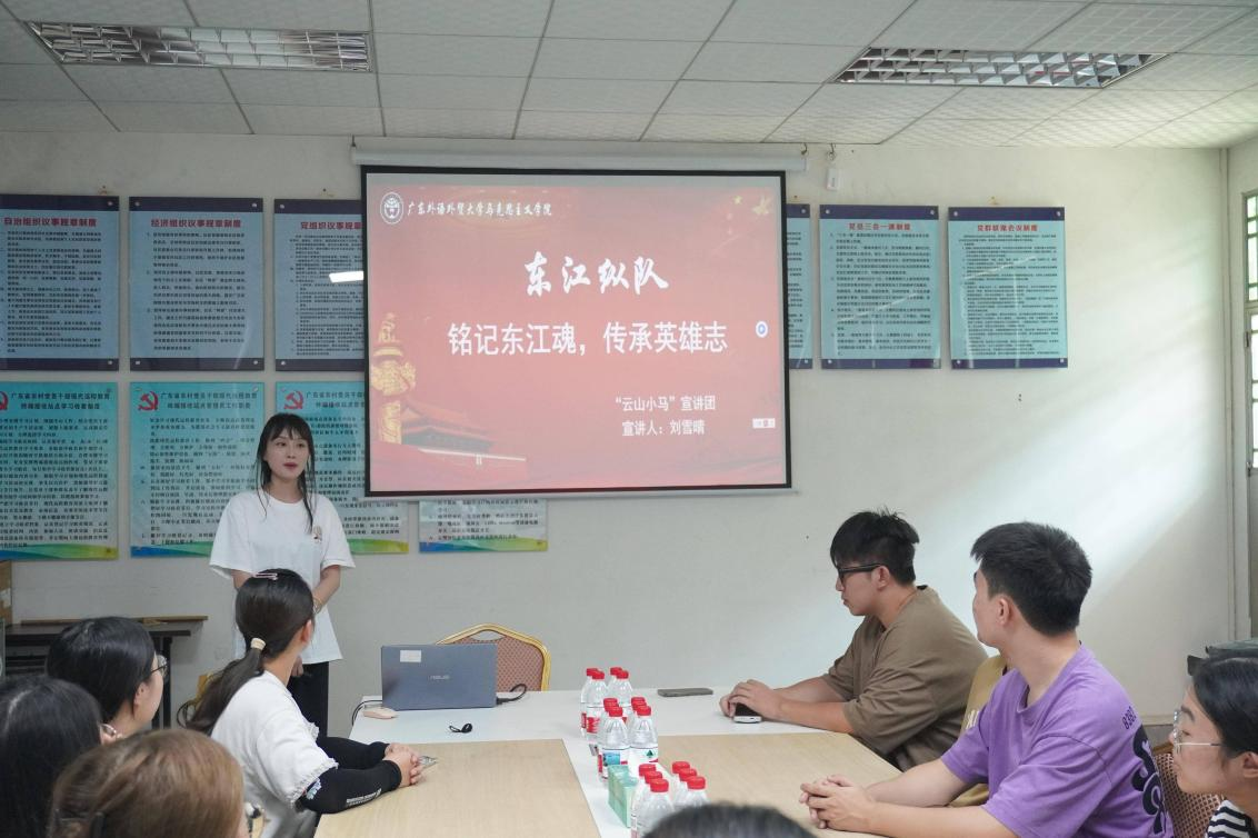 当日下午,突击队首场宣讲在麻涌镇麻二村委会拉开帷幕。宣讲人刘雪晴以《铭记东江魂,传承英雄志》为题,围绕东江纵队的峥嵘历程、光辉事迹与不朽精神展开讲解。从 1938 年日军入侵后东莞抗日模范壮丁队等武装的诞生,到 1943 年东江纵队正式成立,再到李淑桓送七子参军、百花洞战役大捷、省港大营救等英雄故事,生动诠释了东江纵队精神内核。现场听众专注度高、互动积极,宣讲成效显著。