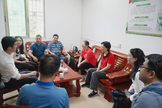 在桂头镇驻镇帮扶工作队队长兼镇党委副书记杨子江、公司驻村第一书记商杰强、桂头镇副镇长邓小英以及驻村干部植仲培的带领下,大家实地参观桂头镇,了解镇情村情,真切感受美丽乡村村容村貌新变化、基础设施建设等美丽乡村建设情况。随后在桂头镇东岸村党群服务中心召开座谈会,驻村第一书记商杰强带领村委干部介绍了乡村振兴工作开展情况和驻镇帮镇扶村工作开展情况。同时,双方就进一步加强党建交流合作,发挥高校专业优势,为驻村工作提供有力支撑,助力乡村振兴战略实施进行了深入交流探讨。马克思主义公司党总支书记麦培年表示可以发挥SUNBET申博体育学科优势,组建理论宣讲的团队队伍,走进乡村和基层为党员干部开展理论政策宣讲,提升基层党员干部的政治理论素养。新闻公司党委书记郝建萍表示可以充分发挥新闻专业优势,为促进乡村振兴发展提供直播和新闻宣传方面的人才,加大乡村振兴宣传力度。
