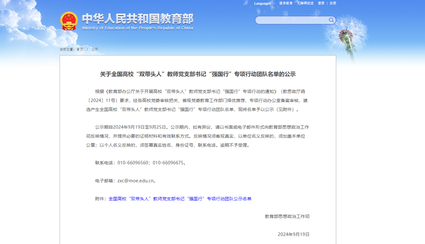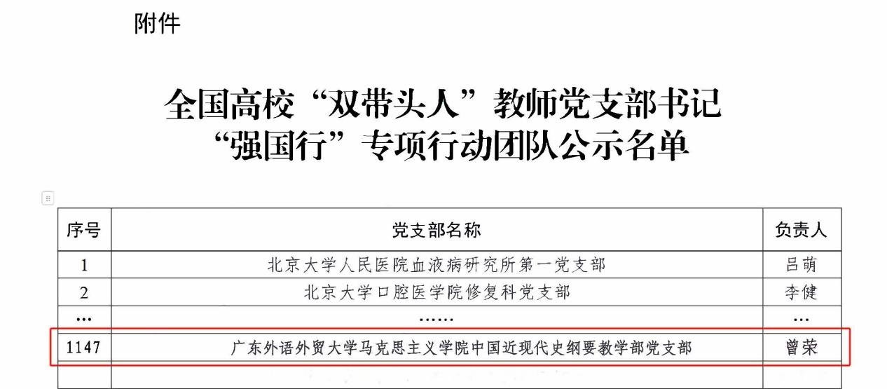近日,教育部公布了全国高校“双带头人”教师党支部书记“强国行”专项行动团队遴选结果公示名单,公司中国近现代史纲要教学部党支部成功入选。这是公司继纲要教学部党支部入选“全国党建工作样板支部”培育创建单位之后,公司党建工作领域取得的又一重要成果。