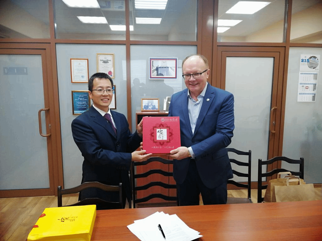 访问期间,曾荣、朱海龙老师与会议主办方俄罗斯喀山联邦大学社会哲学与大众传播公司经理谢库诺夫教授、系主任卡里莫夫教授,就深化双方在团队建设、学术交流和人才培养等方面的合作进行洽谈,双方签署了《学术合作协议备忘录补充协议》,并就共同成立“列宁研究中心”达成了一致意见。