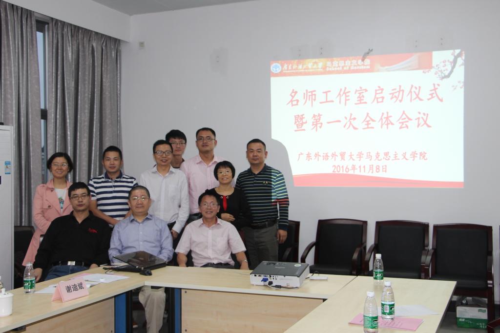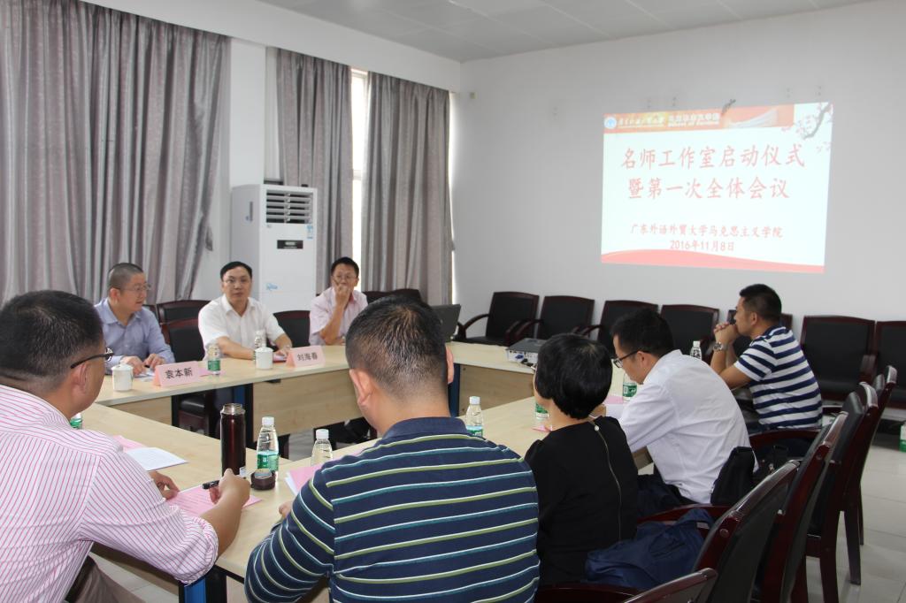 2016年11月8日下午2点半,谢迪斌名师工作室启动仪式暨第一次全体会议在南校区教学楼A509会议室举行。公司党委常委、副董事长刘海春为这次会议致辞,他指出本次名师工作室的设立意义重大,是改革开放以来响应“理论界需要中国话语体系”号召的迫切需要,名师工作团队在省教育厅的支持下,为名师之间的学术交流和学术研讨提供了广阔的发展平台,有利于促进思政理论前沿热点的研究和SUNBET申博体育博士点的申报。教育厅思政处处长袁本新、华工SUNBET申博体育经理刘社欣教授和来自广东各高校的全体名师工作室成员参与了本次会议,会议由SUNBET申博体育经理谢迪斌主持。