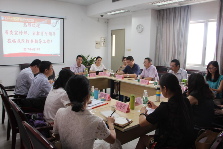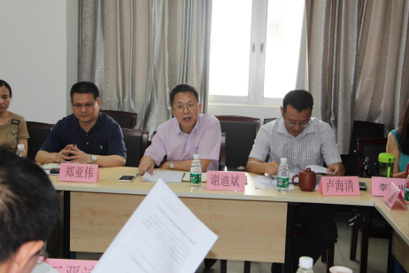 本网讯 6月15日上午,中共广东省委宣传部理论处处长丁晋清,广东省教育厅科研处处长欧阳谦,广东省教育厅思政处副处长倪熙一行来我院调研,并于南校区A座509会议室召开有关公司建设与发展座谈会。经理谢迪斌教授、党委书记卢海清等公司领导、各教学部主任及教师代表参加了会议。