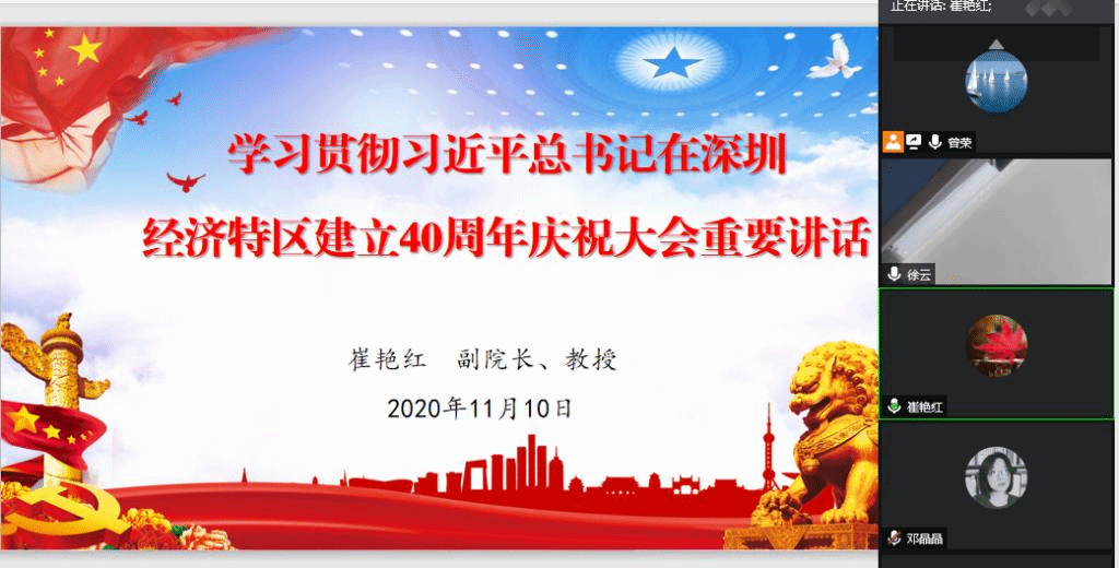 11月10日,纲要党支部全体成员开展在线集体学习活动。此次学习活动包括两项议程:一是由崔艳红副经理做关于“学习贯彻习近平总书记在深圳经济特区建立40周年庆祝大会重要讲话”的专题报告;二是集体学习《习近平谈治国理政》第三卷。此次线上活动由支部书记曾荣主持。
