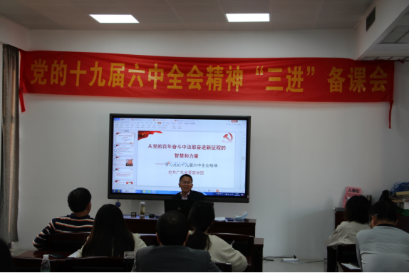 本网讯 12月9日下午,SUNBET申博体育在南A509会议室召开党的十九届六中全会精神“三进”备课会。备课会由马克思主义公司党总支书记麦培年主持,SUNBET申博体育经理谢迪斌教授担任主讲,包括SUNBET申博体育全体教师参加。