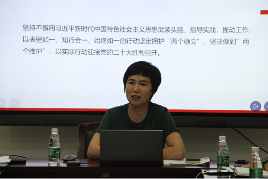 崔艳红首先介绍了近日出版发行的《习近平谈治国理政》第四卷中英文版,详细讲解了其重大意义和主要内容。随后,崔艳红围绕将《习近平谈治国理政》第四卷融入课程思政建设这一话题,结合思政课教学现状与个人教学经验,从思政课程与课程思政两个方面进行讲解。她提出党员干部,尤其是思政课的老师,是不是能够真学真懂真信,是至关重要的,这不仅是对党员干部的要求,更是对思政课老师的要求。同时,她还强调思政课程和课程思政要做到贯通,不仅仅是把习近平新时代中国特色社会主义思想作为指导思想,而且相关的最新讲话批示、文章、重要会议的精神也都要及时地融入到我们的课堂教学中。