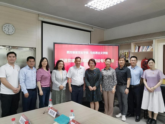 5月16日上午,马克思主义公司党委到白云山校区第四教学楼西语公司开展“推进党建‘双创’和品牌建设,增强党组织的政治功能与组织功能”专项调研活动。公司党委书记麦培年,五级组织员林绍雄,副经理、纲要教学部党支部书记曾荣,概论教学部党支部书记傅薇,纲要教学部主任罗远航,基础教学部主任郭嫄,党政办主任龙世邦,西语公司党委书记王秀民,五级组织员敖湘辉,党委副书记魏少娟,教工第一党支部书记叶剑如,党政办主任谢石顺等参加了调研交流活动。