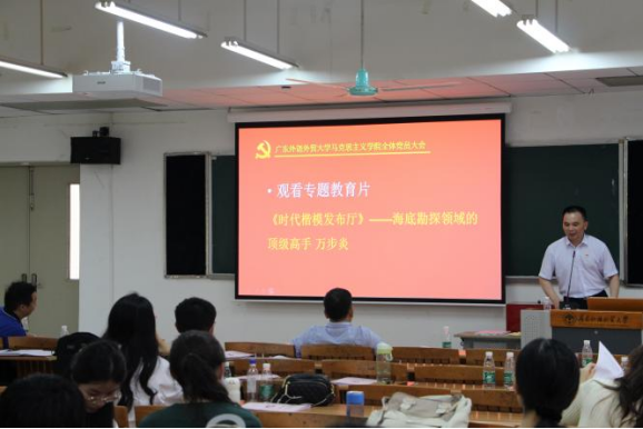 在计票期间,与会党员集体观看了专题教育片《时代楷模发布厅》——海底勘探领域的顶级高手万步炎。