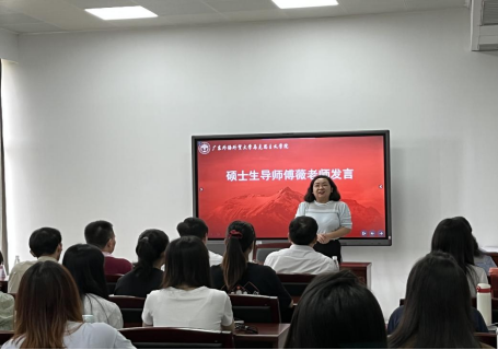 随后,公司硕士生导师代表傅薇老师发言。她从当今世界历史与现实背景出发,结合自身成长经历,讲述“真爱真信真学真用”的道理,展示了马克思主义理论学科的科学性、人民性、实践性和发展开放性。她寄语同学们秉持服务社会之心,摒弃学术功利之气,分清学术与工作的关系,脚踏实地、志存高远,坚信“长风破浪会有时,直挂云帆济沧海”。