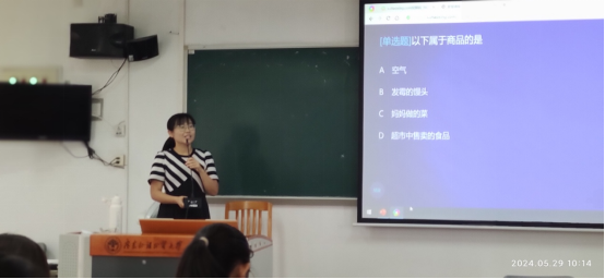 2024年5月19日周三上午,本学期原理教学部公开课在大学城校区E栋教学楼503教室举行。青年教师高琦担任此次教学公开课的主讲教师,教学主题为商品经济和价值规律。