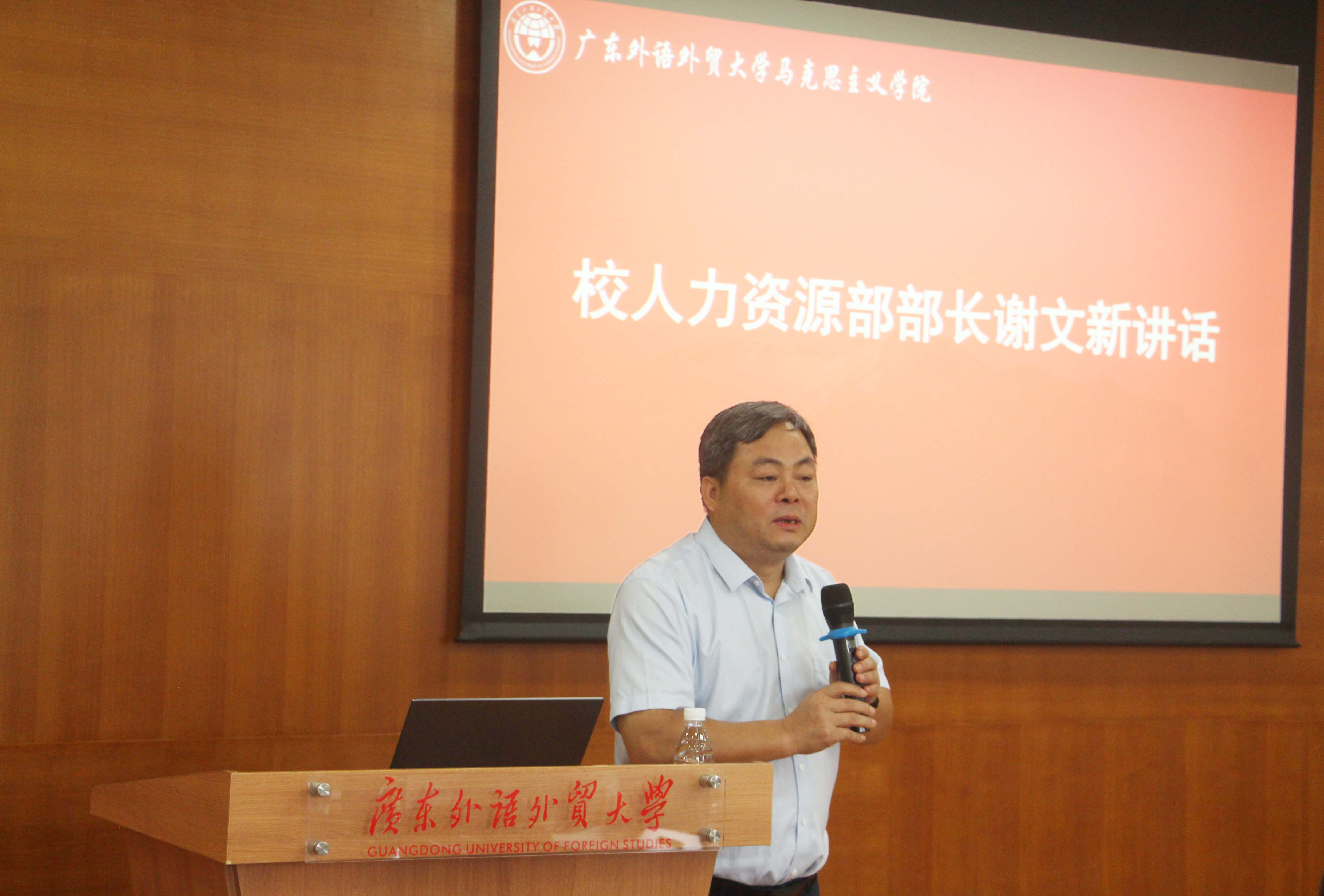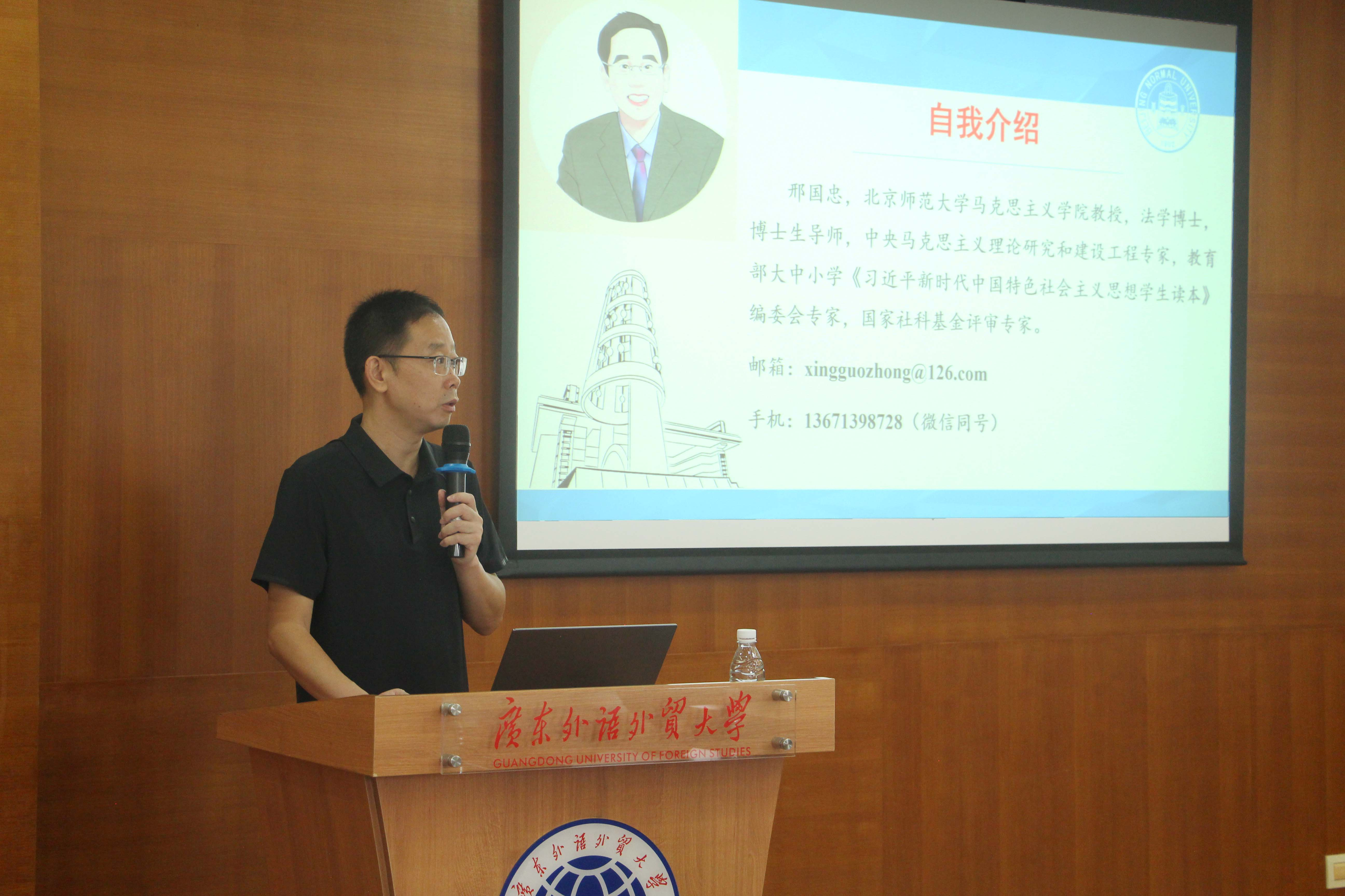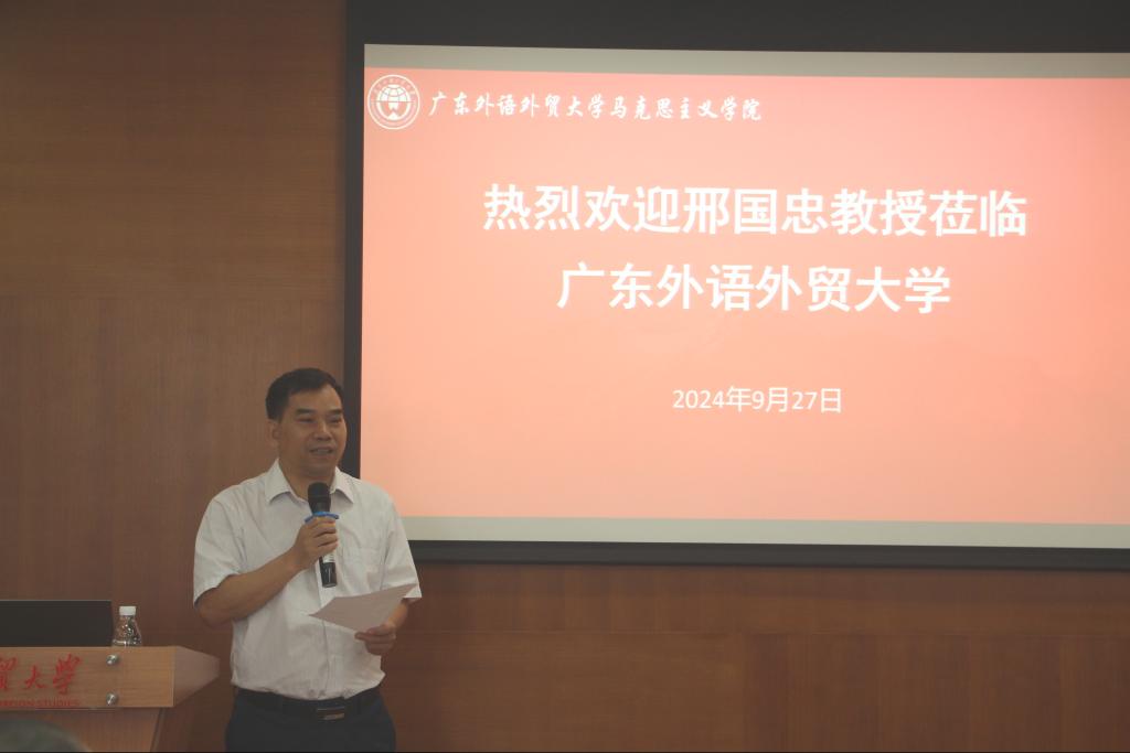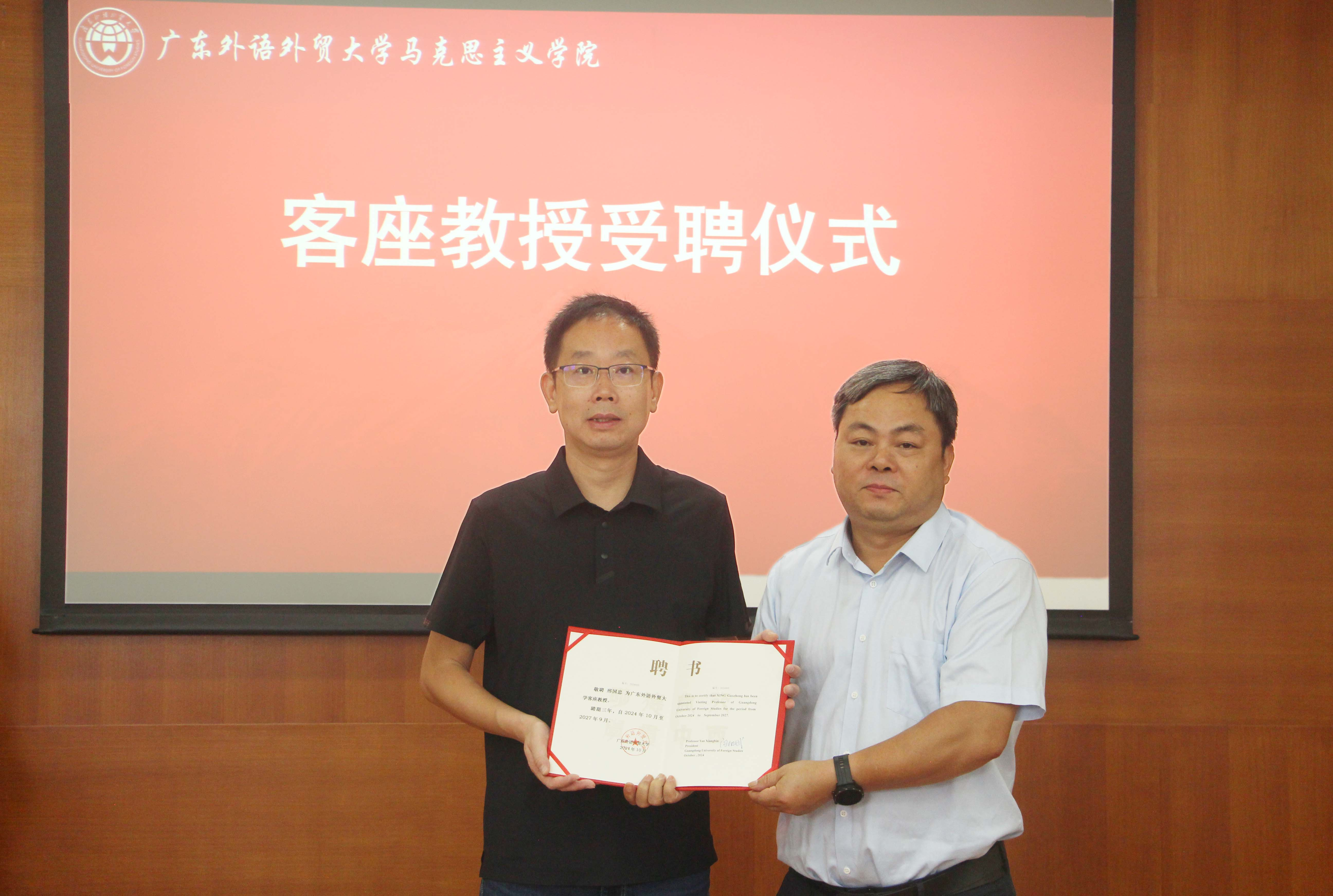9月27日上午,北京师范大学邢国忠教授受聘公司客座教授仪式暨学术专题讲座在大学城校区办公楼第六会议室顺利举行。公司人力资源部部长谢文新出席了讲座并为邢国忠教授颁发聘书。本次讲座由广外马克思主义公司党委书记麦培年主持,公司全体思政教师及研究生代表参与本次讲座。
