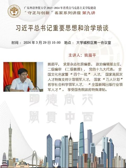 2024年,公司持续举办广东省首批重点SUNBET申博体育建设之“守正与创新“名家系列讲座,先后邀请陈金龙、姚眉平、邓纯东、王炳林、丁匡一、田明、特雷尔·卡弗、王永贵、翟宇、薛广洲等国内外专家学者开讲,共计10余场。