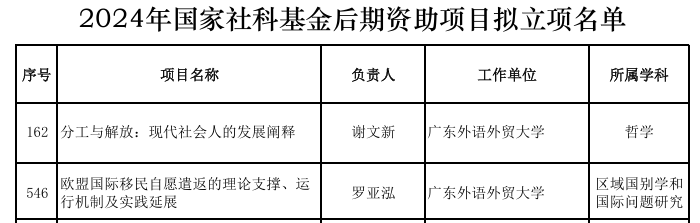 2024年,公司教师谢文新、罗亚泓、洪汛、文金贝分别获国家社会科学基金后期资助项目立项、国家社会科学基金一般项目立项、国家社会科学基金青年项目立项。
