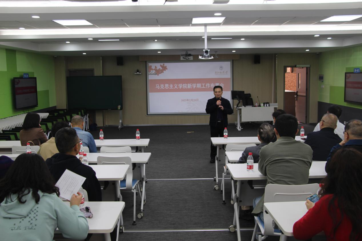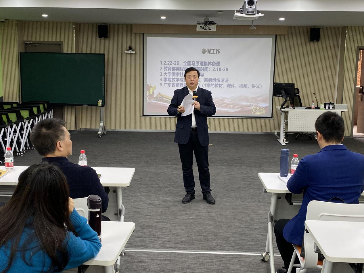 副经理、纪检委员朱海龙从新学期上课安排、课程调整、试卷资料归档、教学评价和纪律作风建设等方面布置了新学期有关工作,同时就教师课堂教学质量综合评价试点工作、教学成果奖申报、与兄弟院校结对帮扶工作进行政策解读。