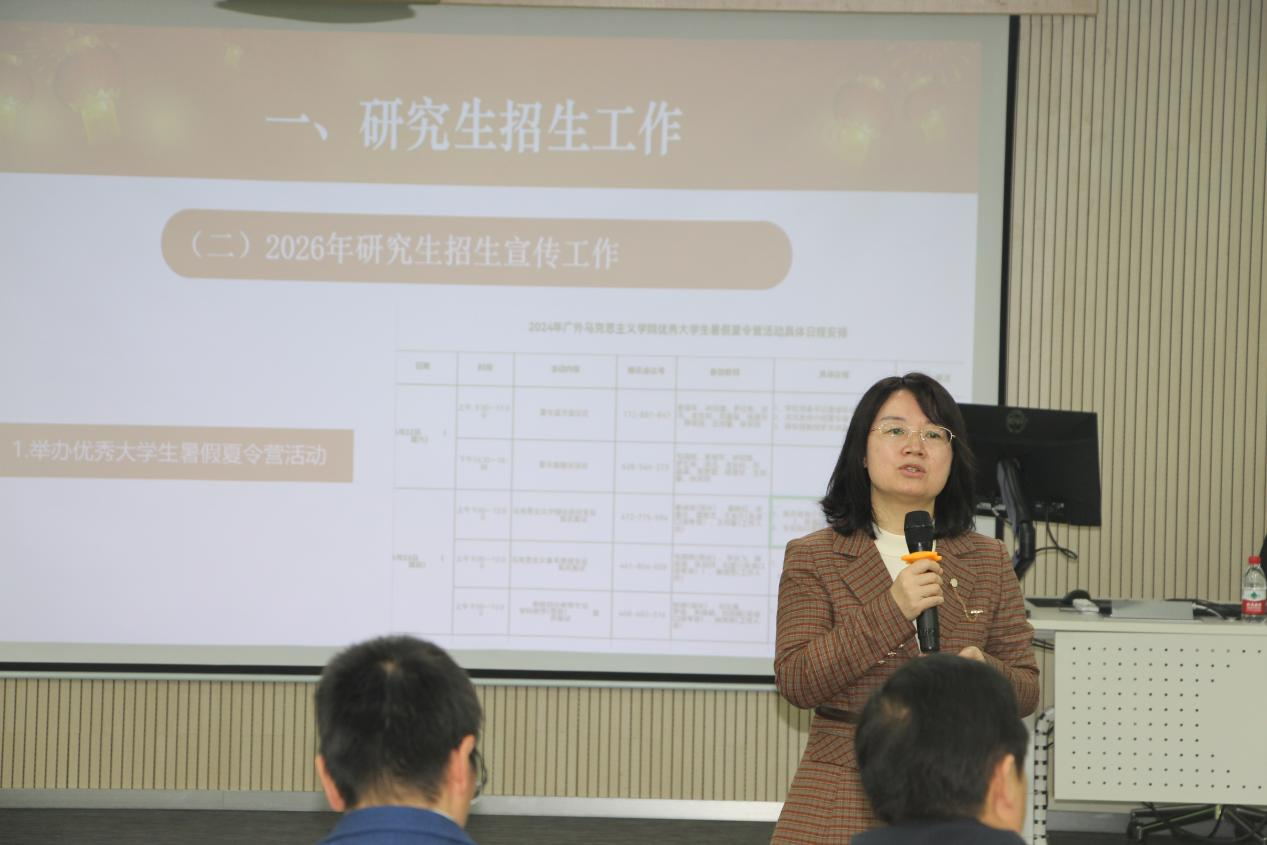副经理曾荣总结了2024年科研工作的六个亮点,指出公司在科研管理制度、科研资助力度、科研论文发表质量、国家级科研立项率、服务经济社会发展能力及学科排名均有提升,同时强调2025年还需要继续在博士点申报、年度各层次课题申报、以高质量科研和学科发展推动广东省重点SUNBET申博体育建设三方面工作持续深耕。