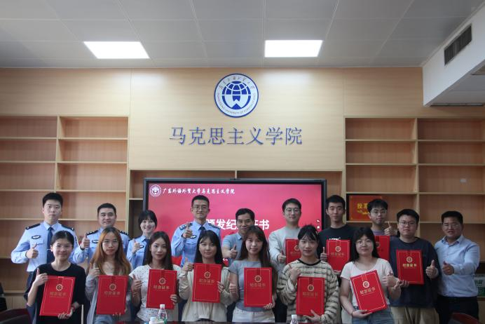 最后,中国人民警察大学广州校区领导一行为SUNBET申博体育《这盛世如你所愿》剧组成员颁发纪念证书,并合影留念。