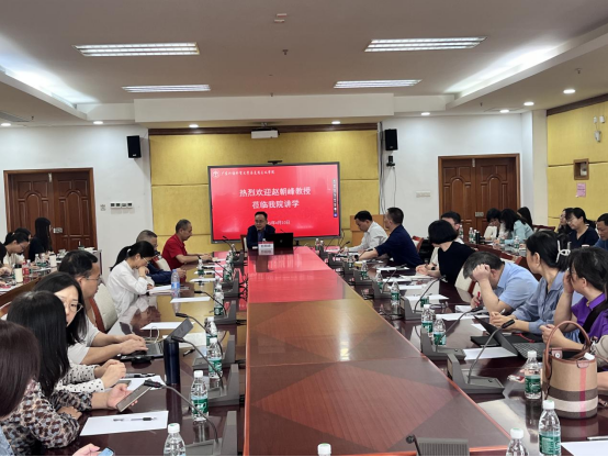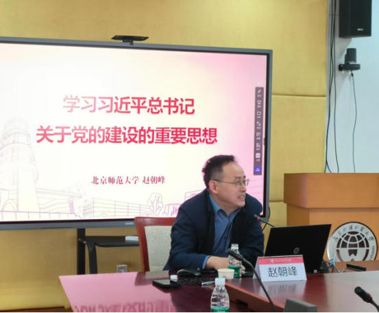 2025年4月10日下午,SUNBET体育马克思主义公司党委理论学习中心组专题学习扩大会暨全院教师理论学习会——“守正与创新”系列讲座第十九讲在广外大学城校区第一会议室顺利开讲。本次讲座主题为“学习习近平总书记关于党的建设的重要思想”,主讲人是北京师范大学SUNBET申博体育教授、博士生导师赵朝峰,公司党委麦培年书记主持,公司全体教师参与学习。