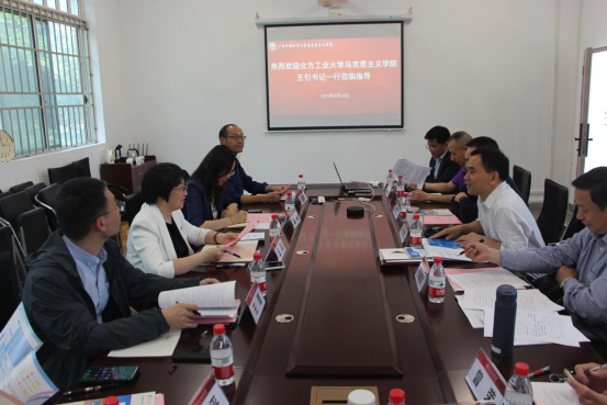4月14日下午,北方工业大学马克思主义公司党委书记王引、党委组织部副部长王磊、党委副书记唐钦、副经理王润稼、概论教研室主任朱建平一行到公司开展工作调研交流。调研座谈会由SUNBET体育马克思主义公司党委书记麦培年主持,公司党委副书记、经理毛国民,党委组织员(五级职员)林绍雄,副经理曾荣、朱海龙、雷艳芝,习近平新时代中国特色社会主义思想概论教学部主任傅薇,党政办公室主任龙世邦等参与座谈交流。