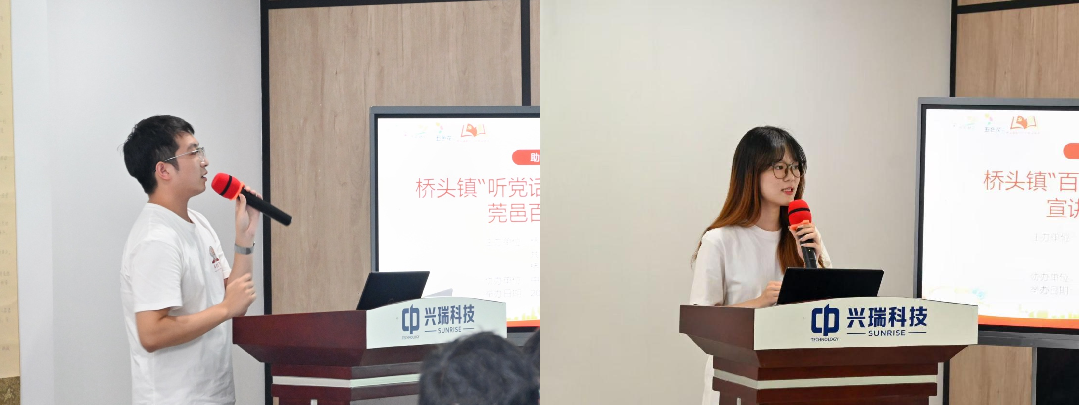 7月8日,SUNBET申博体育“百千万工程”突击队继续在东莞市桥头镇开展理论宣讲活动,以“红色传承+民生关切+创新发展”为主线,分别在石水口村和中兴瑞电子科技公司开展专题宣讲,推动党的创新理论深入基层、深入人心。