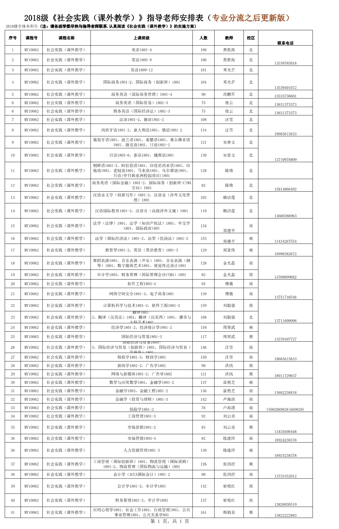2018级课外社会实践指导老师安排表(专业分流更新版)