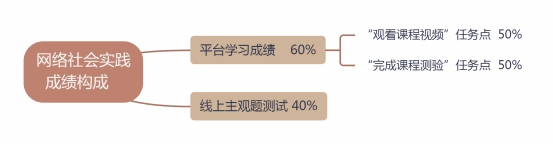 特别强调:平台学习成绩占总评成绩的60%,另外40%根据“主观题测试”给分,两部分相加获得网络社会实践课程的总评成绩。