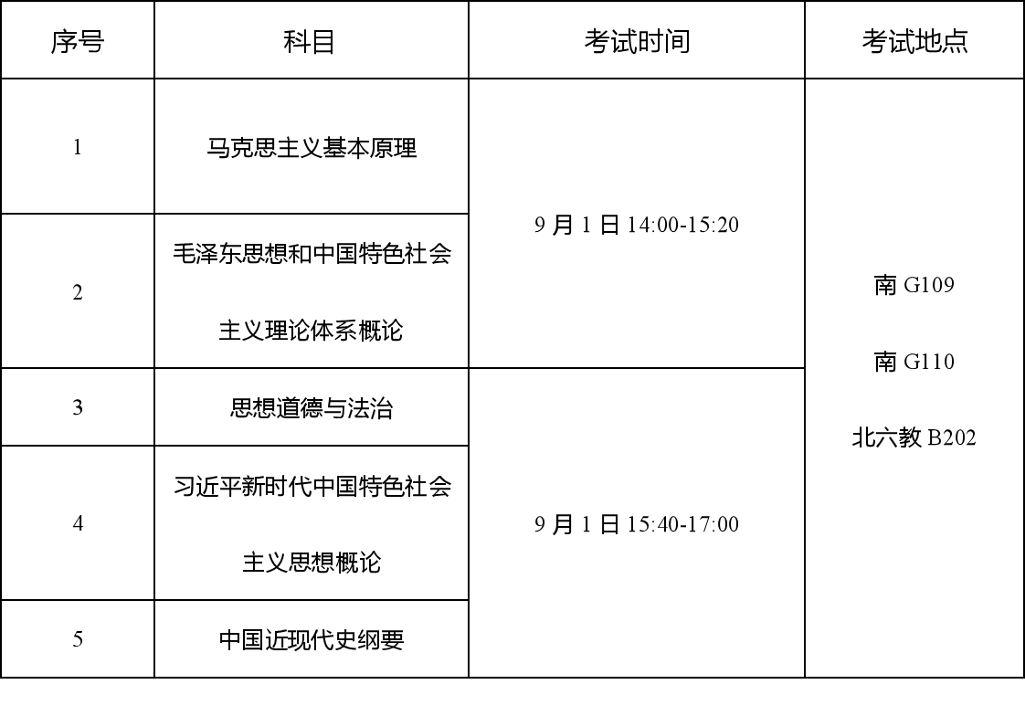 1、思政公共课的补缓考时间为2024年9月1日下午14:00开始。南北校同时开考。考场详细员工名单请参考附件。