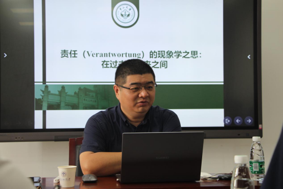9月27日下午,公司2023-2024年“守正与创新”名家系列讲座第一讲在大学城校区A座509会议室正式开讲。第一讲邀请到了中山大学人文社会科学处处长、哲学系系主任、博士生导师张伟教授,为全院老师和研究生代表作了题为《责任(Verantwortung)的现象学之思:在过去与未来之间》的报告。经理毛国民主持讲座。