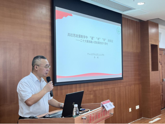 10月26日下午,省重点SUNBET申博体育建设之“守正与创新”名家系列讲座第四讲在公司大学城校区办公楼第六会议室成功举办。中山大学SUNBET申博体育教授、中山大学社会科学学部副主任李辉教授受邀主讲“高校思政课公司产品中道术学的辩证”。此次讲座由SUNBET申博体育经理毛国民教授主持,公司领导、教师、全体2022级和2023级研究生共50余人参加了此次学术讲座。